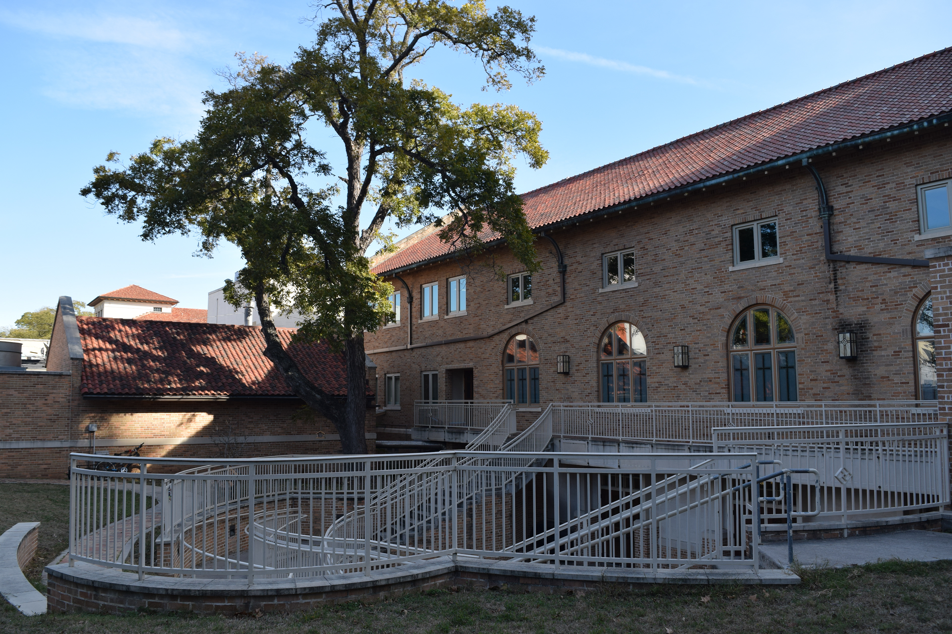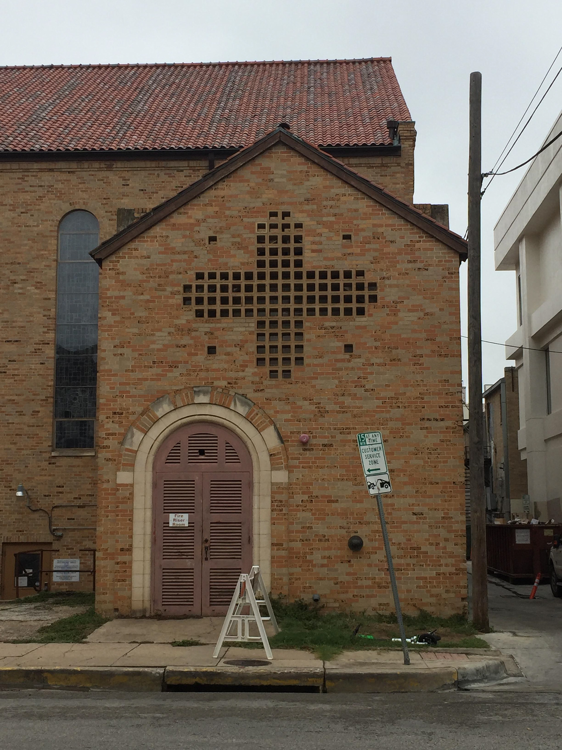 Significance: The significance of this building lies in the ties the parish has with the University and larger Austin community. Additionally, the use of brick and red tile are characteristic of surrounding contemporary architecture. Character defining features include this aforementioned masonry material as well as the stained glass windows, main courtyard, and overall fenestration.