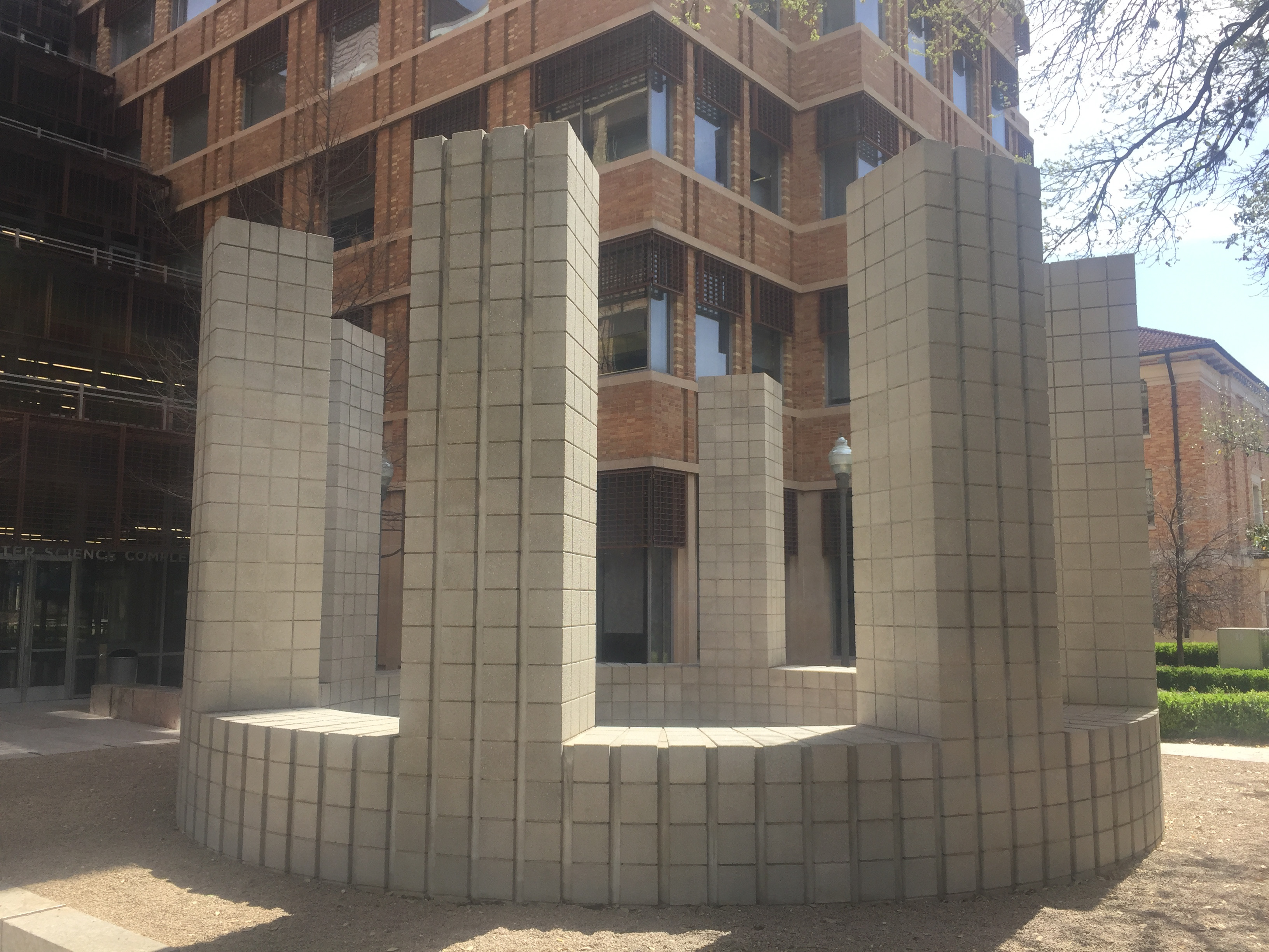 Loss of Stone and Brick Surfaces: There is evidence of spalling and delamination across the sandstone coursework on the south, east, and west façade. The lower three courses on the south façade especially exhibit a large amount of spalling, while the sandstone coursework that follows the ground floor windowsill on the west façade shows signs of both spalling and recent delamination. There are also losses to some of the brick surfaces, mostly likely from mechanical damage, seen on the outer pillars of the porte cochere.